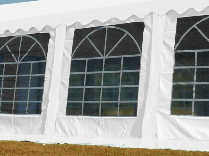- Materiál party stanu: PVC (rovnaký ako sa používa na plachty u nákladných vozidiel) s gramážou 240 g/m2
